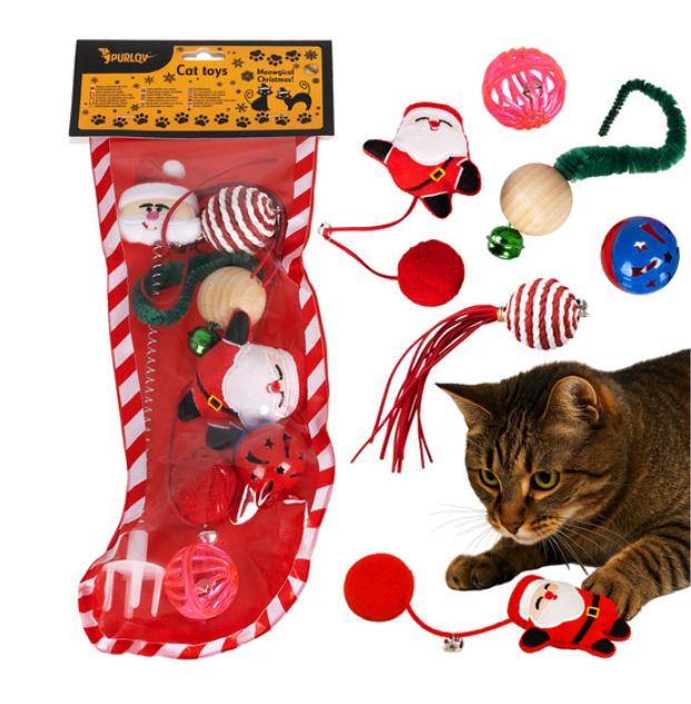 Purlov karรกcsonyi macskajรกtรฉk kรฉszlet โ 6 darabos interaktรญv csomag rugรณs, csรถrgลs รฉs plรผss jรกtรฉkokkal cicรกknak (WNDR26380)