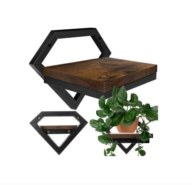 Loft stílusú fali polc fém kerettel és fa polclappal – fekete-barna, növénytartó (19×23×20 cm) (WNDR24253)