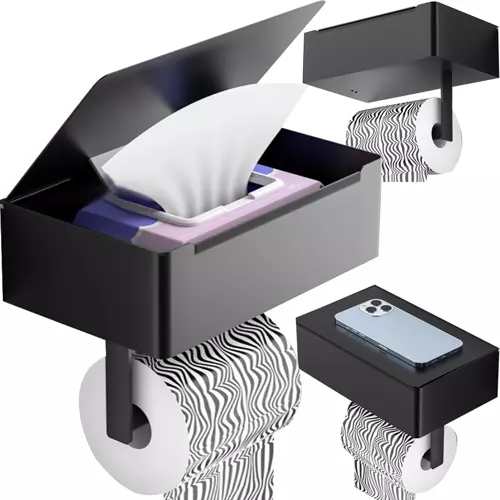 Ruhhy Toalettpapír-tartó polccal – Fekete loft stílusú fürdőszobai kiegészítő (WNDR16358)