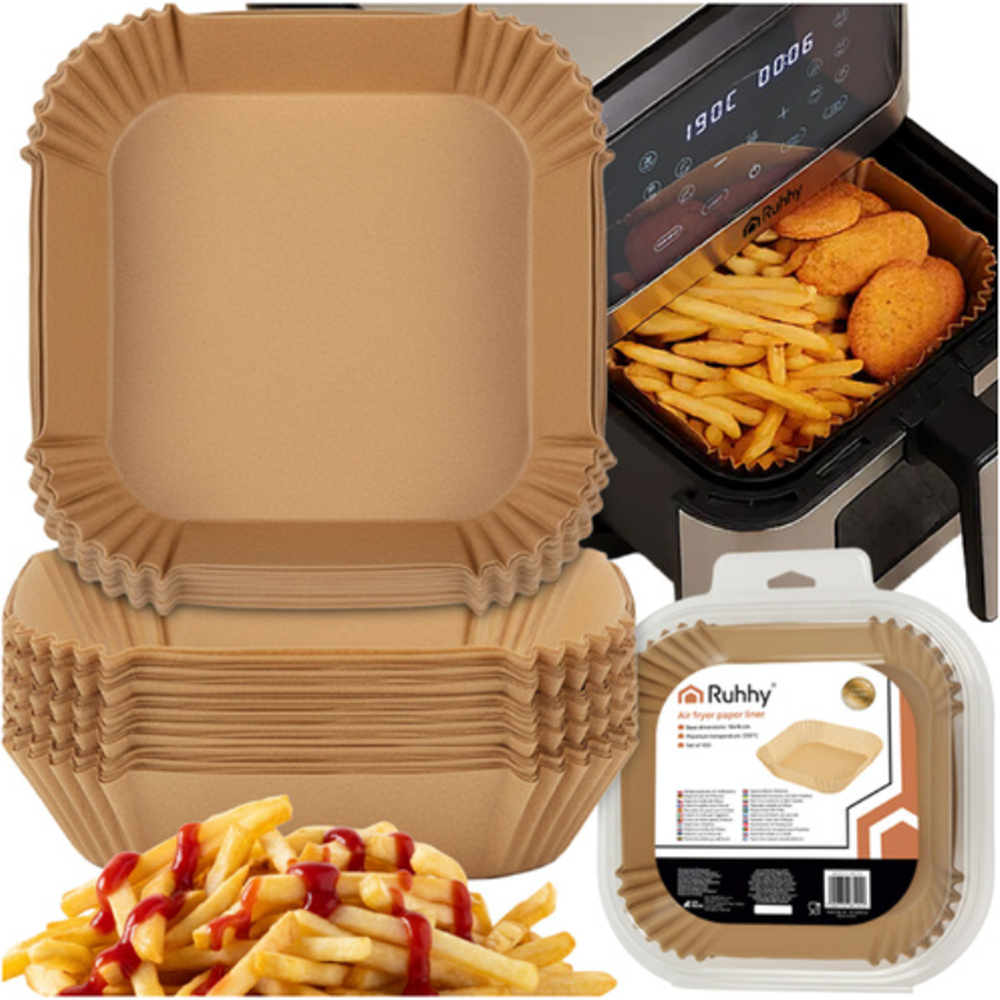 Ruhhy eldobható papírbetét légkeveréses sütőhöz – 100 darabos, 16×16 cm-es olaj- és szennyeződésálló fritőzbetét (WNDR26955)