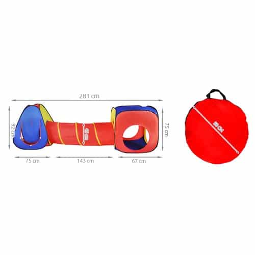Ez a 3 az 1-ben gyermek sátor tökéletes választás a kicsik számára, akik imádnak játszani, bújócskázni és saját kis kuckót kialakítani. A szett három részből áll – egy tágas sátorból, egy alagútból és egy játszóházból –, amelyek együtt és külön-külön is használhatók.