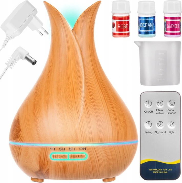 Ez a 400 ml-es ultrahangos párásító egyesíti a funkcionalitást és a stílust: segít a levegő egészséges párásításában, miközben aromaterápiás élményt nyújt, így ideális választás bármely otthonba vagy irodába.