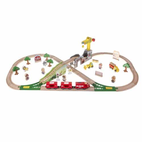 A készlet összes elemét kiváló minőségű fából készítik, ami biztosítja a tartósságot és az élettartamot. A kisvonat és a pályaelemek részletei gondosan kidolgozottak és színesek, így még élethűbb játékélményt nyújtanak.