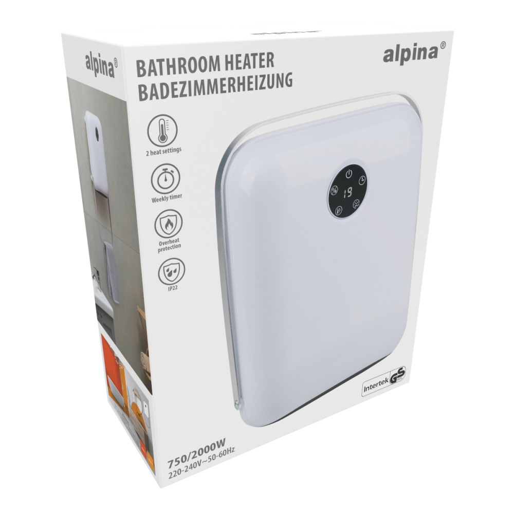 Az Alpina fürdőszobai hősugárzó gyors, biztonságos és energiatakarékos megoldás fürdőszobák, kisebb helyiségek vagy irodák felfűtésére. A modern PTC fűtőelem és a digitális kijelző egyenletes hőelosztást és kényelmes hőmérséklet-szabályozást biztosít.