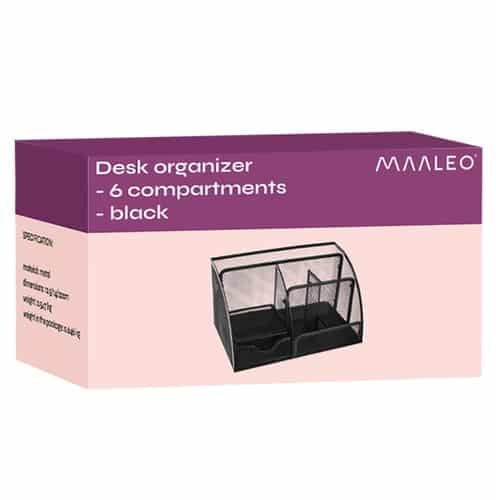A bemutatott íróasztal-rendező egy nagyon praktikus kiegészítő, amely hasznos lesz otthon és a munkahelyen egyaránt. Probléma nélkül elfér benne minden szükséges irodai eszköz, beleértve a tollakat, filctollakat, radírt, gemkapcsot, ragasztót vagy ollót.