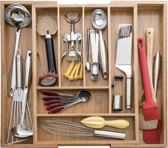Bambusz konyhai fiókrendező/evőeszköztartó, állítható szélességgel, 6-8 rekesszel (WNDR19189)