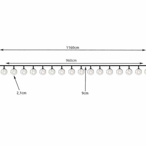 • Meleg sárga fény a kényelmes hangulathoz – A füzér meleg fehér fényt bocsát ki, amely tökéletesen alkalmas egy barátságos és hangulatos világítási hatás létrehozására. A gömbök között 9 cm távolság van, biztosítva a fény egyenletes eloszlását az egész füzéren.