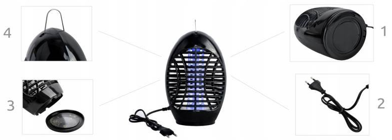 A készülék speciális fényt bocsát ki, amely vonzza a szúnyogokat, legyeket, molylepkéket és más repülő rovarokat, majd az elektromos rács segítségével elpusztítja őket. Vegyszerek, szagok és káros anyagok nélkül működik, így teljesen biztonságos emberek és háziállatok számára is.