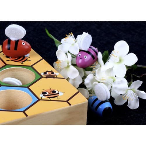 Fogd meg a méhecskét – ez a különleges fakocka játék remek ötlet arra, hogy a kisgyerekedet lekösd. A móka abban rejlik, hogy műanyag csipeszekkel meg kell ragadni a méhek szárnyait. A rovarok egy fadugóban vannak elrejtve. Minden méh más színű, és a szárnyak filcből készültek.