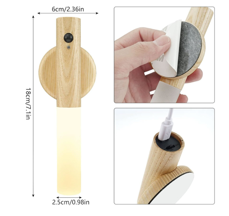 Teremtsen meleg, barátságos hangulatot otthonában ezzel a fa mintázatú, újratölthető LED fali lámpával, amely ötvözi az elegáns megjelenést és a praktikus, mozgásérzékelős technológiát. Ideális választás hálószobába, folyosóra, gyerekszobába vagy akár lépcső mellé – mindenhol ott világít, ahol szükség van rá.