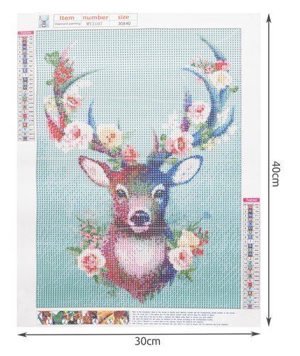 A készlet számos olyan elemet tartalmaz, amelyek sokkal kényelmesebbé és praktikusabbá teszik a műanyag kövek beillesztését. A termék vászonra nyomtatott sablonnal érkezik, a vásznat speciális ragasztóréteg borítja, amely lehetővé teszi a gyémántok felragasztását. A készletben különböző színű gyémántokat találunk, amelyeket számozott zsákokba rendeztek és szimbólumokkal jelöltek. A csomagban található egy applikátor strasszkövek felviteléhez és egy műanyag tartály a kövek tárolására.