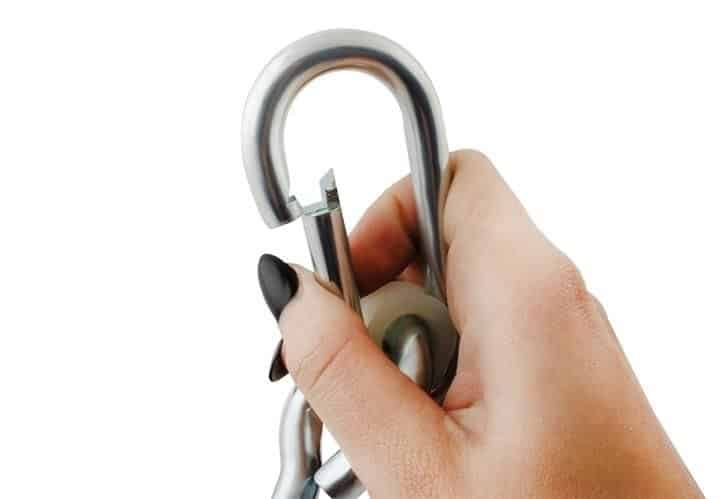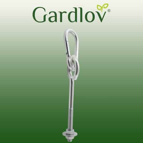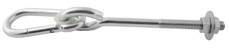A horganyzott, metrikus menettel és karabinerrel ellátott kampó egy speciális kampó a hinta biztonságos felfüggesztéséhez (függőágy, mászóháló, mászókötél). Ez a karabinerrel ellátott kampó galvanikusan horganyzott vasból készült. A karabiner teflongyűrűvel rendelkezik a simább mozgás érdekében és megakadályozza a nem kívánt „nyikorgó” hangok kibocsátását használat közben.