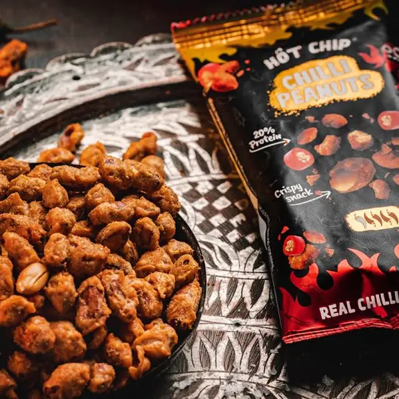 A Hot Chip Chilli Peanuts fűszeres földimogyoró-ropogtatnivaló tökéletes választás azoknak, akik szeretik a karakteres, csípős ízeket. A 75%-ban földimogyoróból álló snacket ízletes fűszerkeverék – paprika, chili, fokhagyma – borítja, amely garantálja az intenzív, tüzes élményt minden falatban.