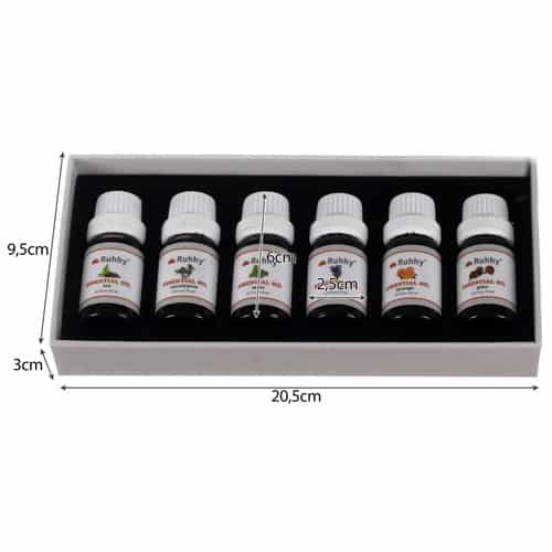 6 KÜLÖNBÖZŐ ILLAT – Az egész készletben 6 különböző illat található, mint például: eukaliptusz, narancs, teafa, menta, levendula és fenyő. Az összes olaj lezárva található üvegpalackokban, amelyek mindegyike 10 ml-es.