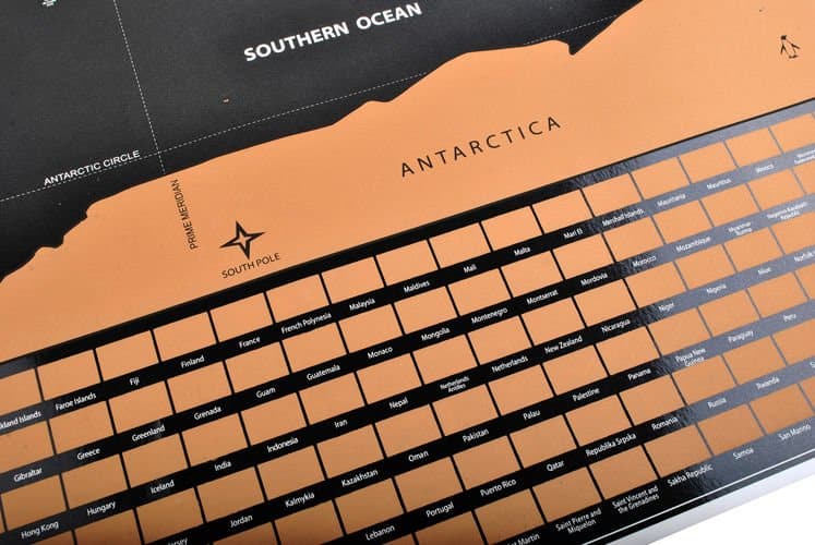 Világutazók figyelem! A kaparós világtérképnek köszönhetően nem szükséges jegyzetfüzetbe írnia azokat az országokat és városokat, ahol már járt, elég ha plakátként, parafa táblára helyezve vagy bekeretezett formában a falára helyezi. A térképen a világ minden országa helyet kapott, amelyek felületét egy arany színű fólia borítja. A fólia lekaparásához csak egy érme szükséges, amellyel megjelölheti, hogy melyik országban barangolt.