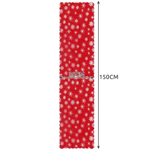 A karácsonyi asztali futó 150×35 cm nemcsak praktikus védelem, hanem egy szép dekorációs elem is, amely emeli az ünnepi étkezések hangulatát, miközben védelmet nyújt az asztal számára.