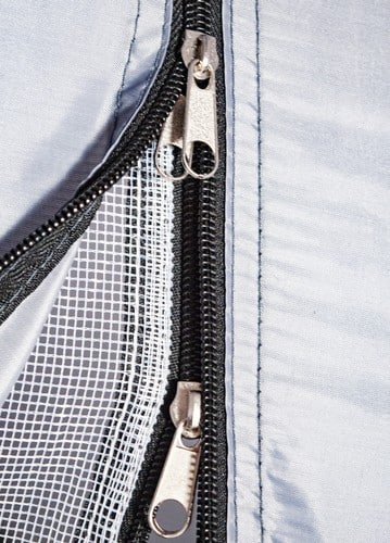 Tető – a sátor praktikus előtetővel rendelkezik, amely védi a sátor előtt tárolt ruhákat és cipőket, vagy a „konyhát”. Ennek köszönhetően nem kell attól tartanod, hogy a dolgaid beáznak az esőben. Ez megoldja az utazók gyakori problémáját, ami a sátorban uralkodó rendetlenség.