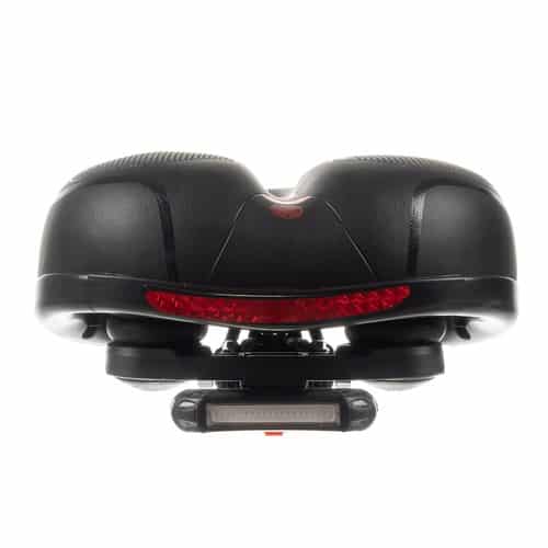 Egy modern kerékpárülés puha és kényelmes. Ezenkívül nagyon jól elnyeli a rezgéseket, így élvezni fogja a kerékpározást. Az ülést 2 rugóval és speciális habbal szerelték fel, amelyek elnyelik a rázkódásokat kerékpározás közben. Egy beépített világítás is tartozik hozzá.