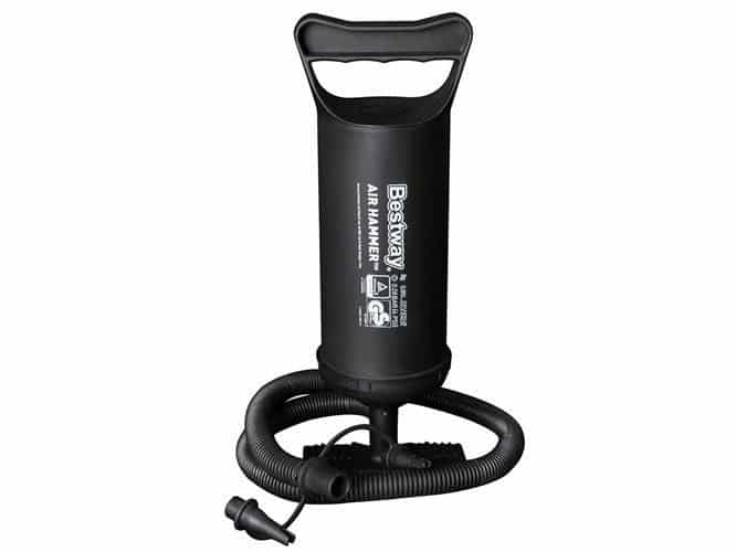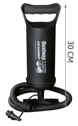 - HOSSZÚ TÖMLŐ – kényelmes pumpálást tesz lehetővé, nem kell lehajolnunk egy adott termékhez, elég a szivattyú alján lévő lábtartókra állni és kényelmesen felfújni a terméket.
