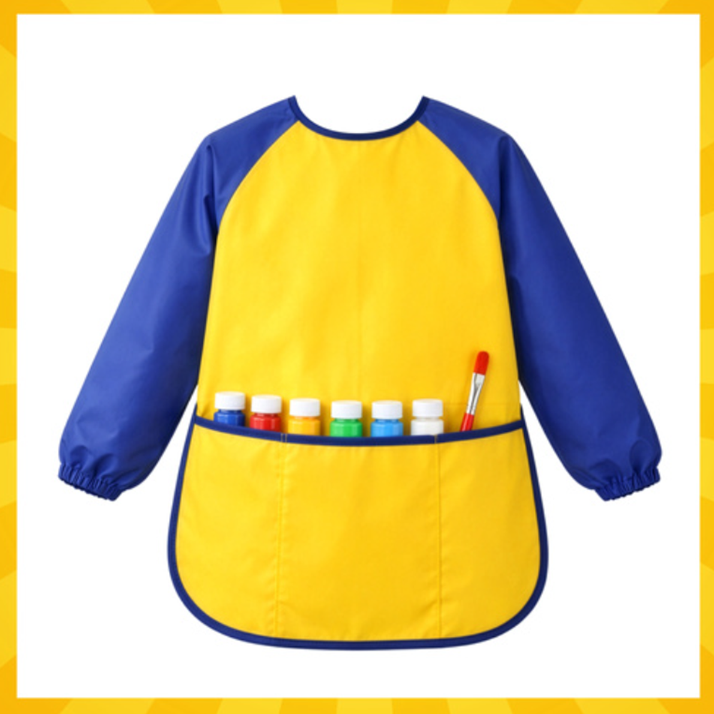 🎨 Teljes védelem: Hosszú ujjas kialakítás gumírozott mandzsettával, amely megakadályozza, hogy a festék a kézre vagy az alkarra kerüljön.