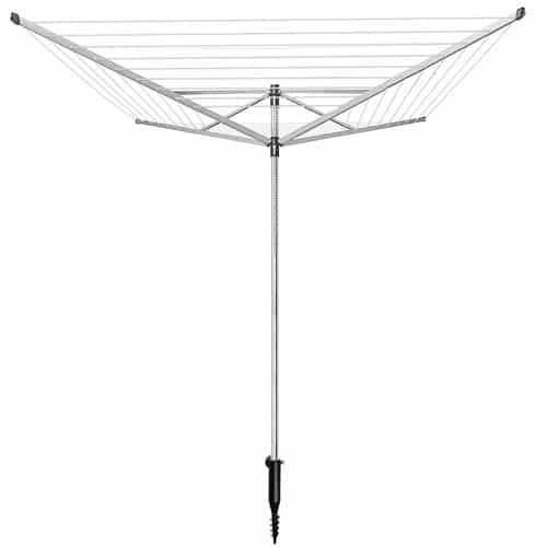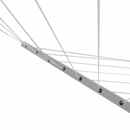 ✔ 50 méter szárítózsinór – A négykaros kialakítás összesen 48 szárítózsinórt kínál, így akár 40 kg ruhát is elhelyezhetsz rajta. A karok biztonságosan rögzíthetők összecsukott állapotban, így elkerülhető a véletlen összezáródás.