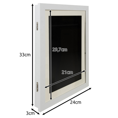 Ez a fehér művészeti keret lehetővé teszi, hogy akár 150 darab A4-es rajz tárolását és kiállítását oldd meg egyetlen elegáns kerettel. Az egyszerű hozzáférhetőség biztosítja, hogy gyorsan és könnyedén frissíthesd a kiállított műveket.