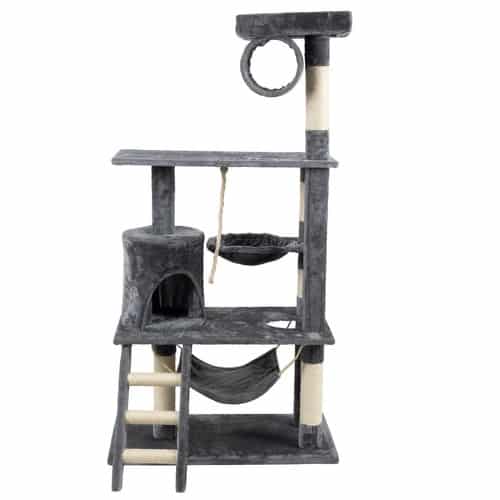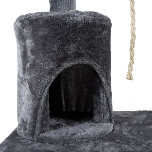 • Teljes felszereltség: A kaparófa rendelkezik kaparóoszlopokkal, kuckókkal és fekvőhellyel, így a cicád mindig megtalálja a neki megfelelő helyet.