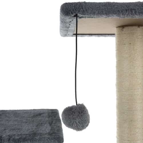 - 4 emelet – A macska mászóka emeletei rendkívül puha szőrrel vannak borítva, ami kényelmes pihenést és dorombolást biztosít. A fő előnye a nyugágy, ahol a cica szabadon pihenhet. 4 szint, amelyek lehetővé teszik a macska kíváncsiságának felfedezését. Unalom esetén akár egy puha labdát is megkereshet és megtámadhat, amelyet egy gumiszalagon rögzítettek.