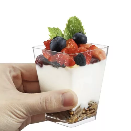 A MEGFELELŐ KAPACITÁS – átlátszó csészék egyenként 120 ml űrtartalmúak . A desszerttartók nem csak praktikusak, hanem eleganciát és esztétikát is adnak a felszolgált ételeknek.