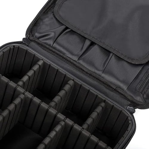 A kozmetikai táska különböző méretű zsebekkel, mozgatható rekeszekkel és rugalmas zsebekkel rendelkezik, amelyek segítenek a kozmetikumok egyszerű rendszerezésében és elkülönítésében. Nagy kapacitása többféle sminktermék tárolását teszi lehetővé egy helyen. A kemény rekeszek rendezője pedig igényeidhez igazítható.