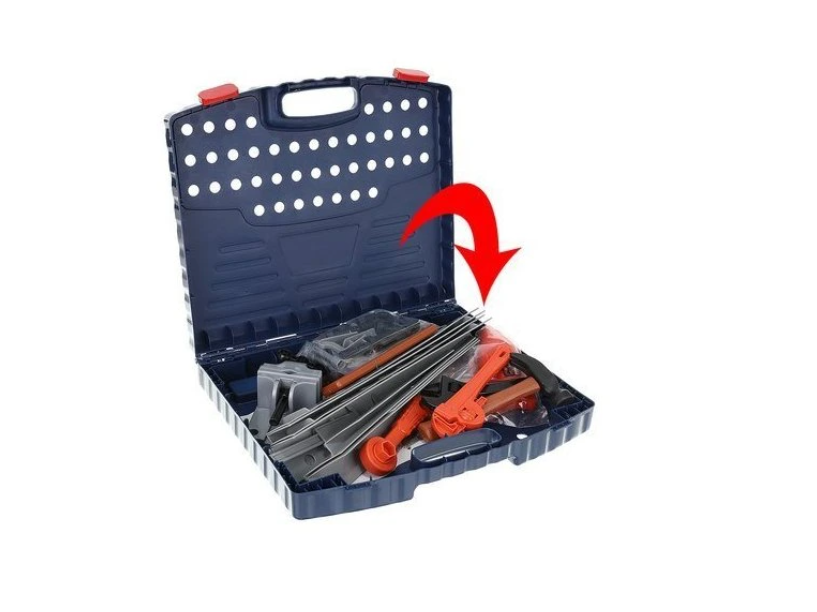 Minden szerszám és kiegészítő rendezett, kompakt bőröndben található, ami könnyen magunkkal vihető óvodába, nagyszülőkhöz vagy barátokhoz. A levehető lábak és csavarok segítségével a bőrönd stabil munkapaddá alakítható, amelyen még esztergáló satut is elhelyezhetnek a gyerekek, így igazi profi módjára dolgozhatnak.