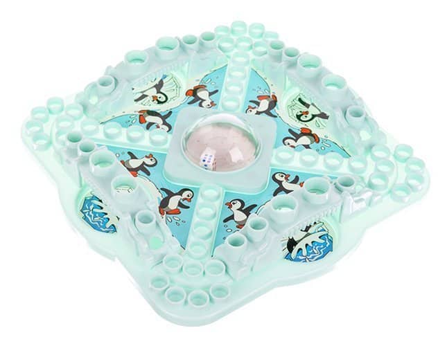 A pingvines játéknak szokatlan megoldása van hagyományos dobókocka helyett. Egyszerűen nyomja le a tábla közepén található félgömböt, amitől a kocka megmozdul és forogni kezd. Így nem kell attól tartanod, hogy a kocka elgurul, leesik vagy elveszik valahol.