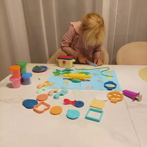 2. 5 Különböző Színű Gyurma: A gyurmák különböző színei lehetővé teszik, hogy a gyerekek színes és változatos szendvicseket készítsenek. A gyurmák könnyen formálhatóak, és hosszú ideig megtartják az alakjukat.