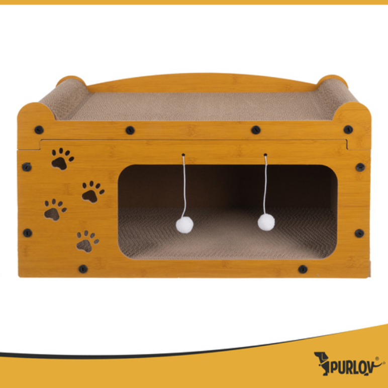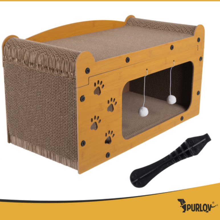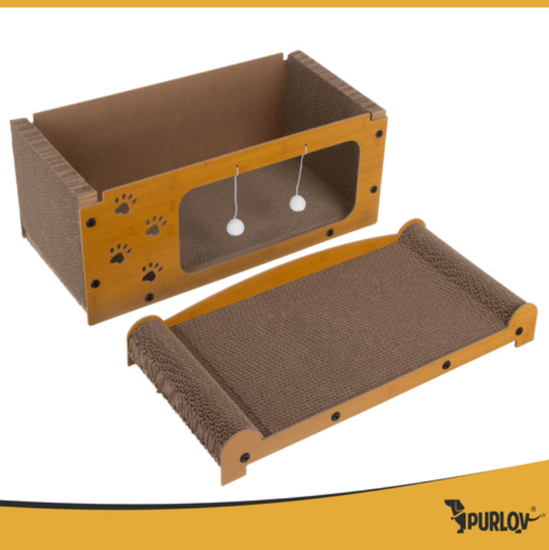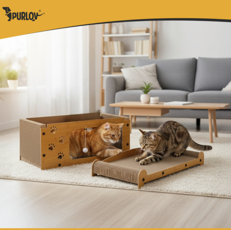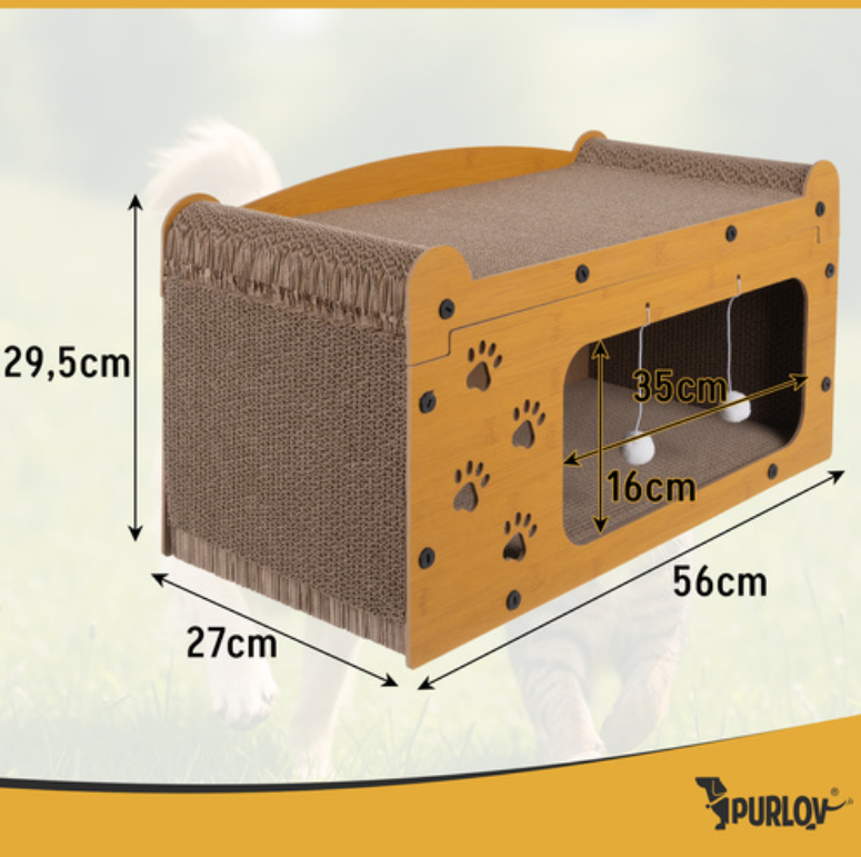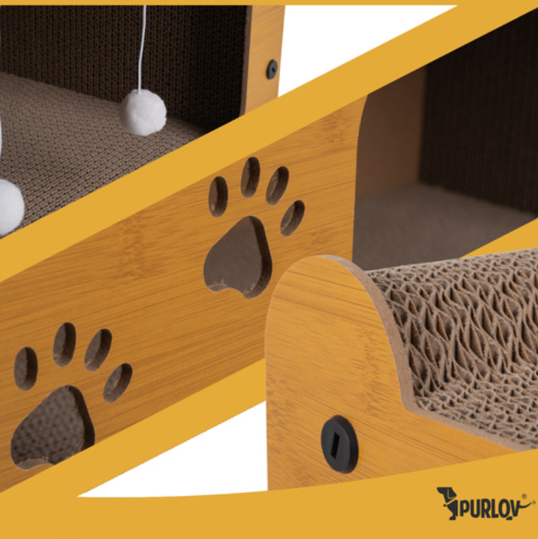A Purlov macskakaparó 100%-ban környezetbarát hullámkartonból és HDF-ből készült, ragasztó- és méreganyag-mentesen. Nincsenek éles szélek – csak biztonság, természetesség és harmónia a lakásban. 🌍