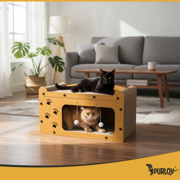 A Purlov kétszintes kaparóház nemcsak a cicád kedvenc helye lesz, hanem a lakás dísze is – modern, okos és környezetbarát megoldás, ami örömet hoz mindkettőtök életébe. 🐾💚