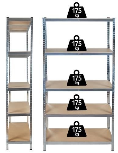Ez a 5 polcos raktári polc ideális garázsokba, pincékbe, raktárakba vagy üzletekbe, ahol nagy teherbírású, stabil és praktikus tárolóra van szükség. Strapabíró kialakítása lehetővé teszi, hogy akár 875 kg súlyt is elbírjon összesen, egy-egy polc pedig max. 175 kg-ot.