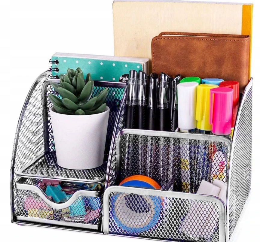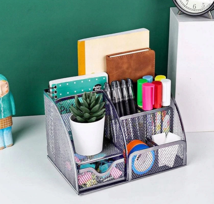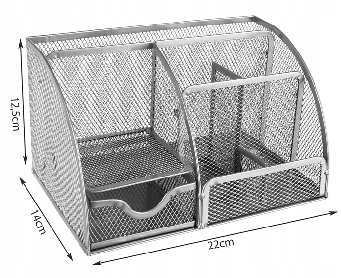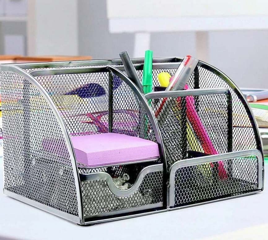 Az organizer tartós fémből készült, amely stabilitást és hosszú élettartamot biztosít. Mindennapos használatra tervezve, legyen szó otthoni íróasztalról, munkahelyről vagy iskolai környezetről.