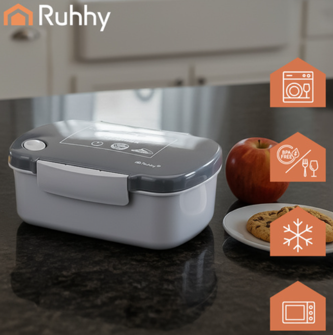 Ruhhy uzsonnásdoboz hőálló és univerzálisan használható – melegítheted benne az ételt, lefagyaszthatod a maradékot, majd könnyedén elmoshatod a mosogatógépben. Időt és helyet spórol, miközben kíméli a környezetet.