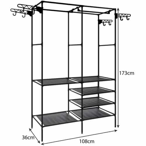 A XXL méretű ruhaállványok rendkívül praktikusak, mivel elegendő helyet biztosítanak a ruhák és egyéb textiltárgyak számára. Nem csupán a tárolásban segítenek, de a rend és szervezettség fenntartásában is kiemelkedő szerepet játszanak. Ez az állvány helytakarékos megoldás azok számára, akiknek korlátozott a helyük vagy ideiglenes bútorral rendelkeznek otthon. A 6 polccal, 2 akasztórúddal és 8 akasztóval ellátott állvány könnyen illeszkedik különböző helyiségekhez. Az állvány mobilitása egy másik kiemelkedő előnye. Könnyű súlya lehetővé teszi, hogy könnyen áthelyezhető legyen egyik helyről a másikra. Ez különösen hasznos, ha szeretnénk változtatni a szoba elrendezésén, vagy új lakóhelyre költözni. A telepítés egyszerű és gyors, mivel az állvány elemei könnyen össze- és szétszerelhetők. Nem igényel bonyolult szerszámokat vagy készségeket. Csatlakoztassa egyszerűen a csatlakozókat a csövekhez, és már készen is van.